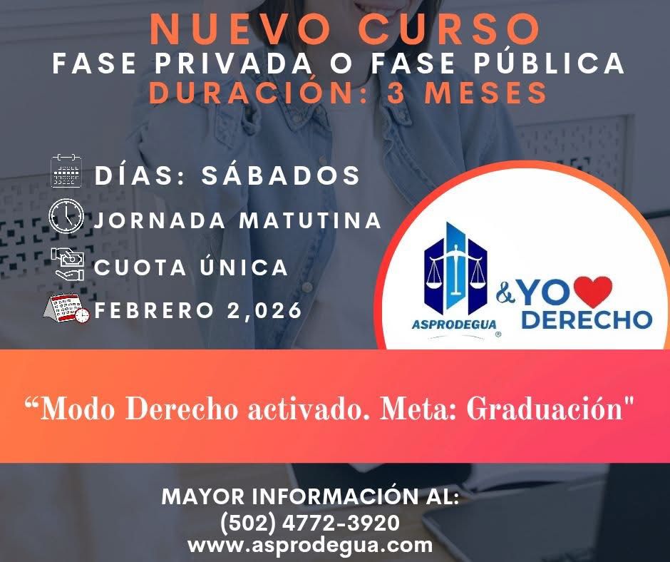 Te instamos en cumplir tus metas, logrando obtener un resultado satisfactorio en el examen técnico profesional fase privada. Participa en nuestro curso apto para todas las universidades de Guatemala, contamos con clases virtuales en vivo, repasos, material y lo mejor, una cuota única.