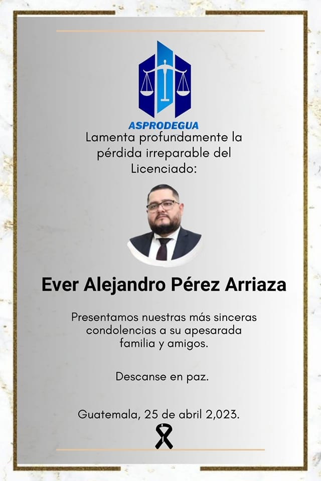 ASPRODEGUA manifiesta sus condolencias por el fallecimiento del Licenciado Ever Alejandro Pérez Arriaza.