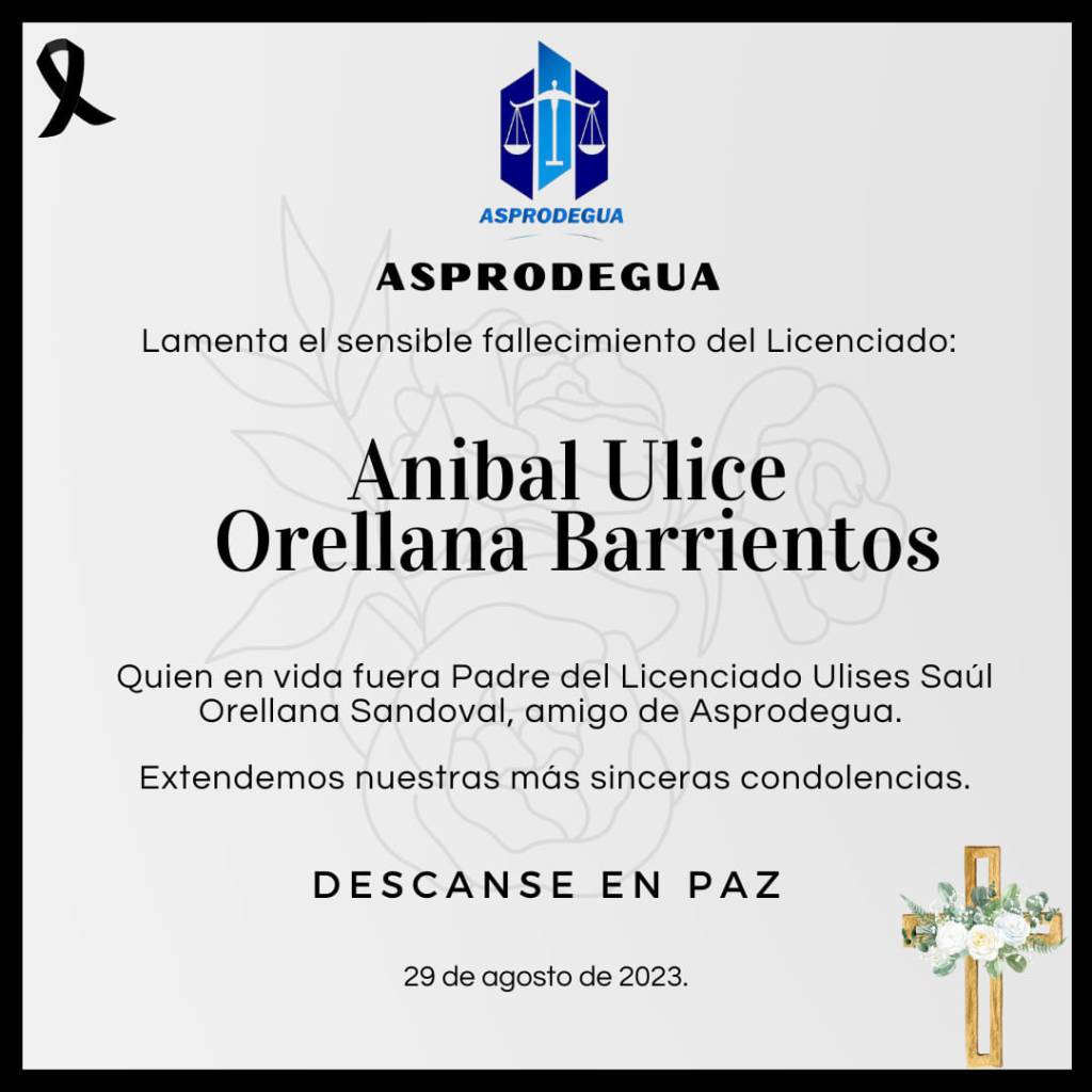 Lamentamos profundamente la pérdida de Anibal Ulice Orellana Barrientos y nos unimos al dolor de su familia y amigos. Desde ASPRODEGUA queremos expresar nuestras más sinceras condolencias y nuestro apoyo en estos momentos difíciles.
